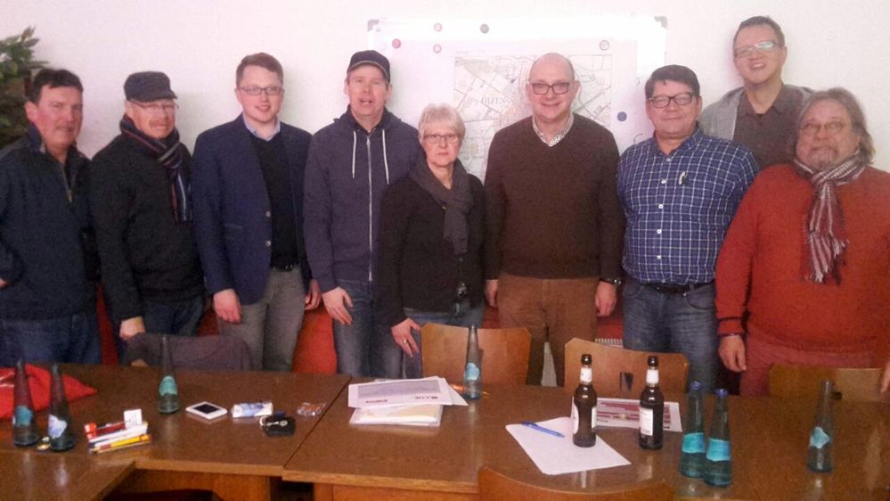 André Stinka (4. von rechts) und Johannes Waldmann (3. von links) mit den Genossen und der Genossin aus Olfen